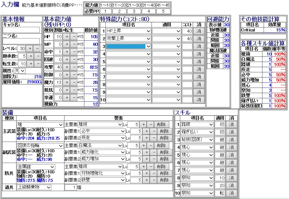 単体回復が使えて槍で戦えてちょっと耐えるーとかそういうやつがいいといっていたので、使うとしたらこんなものかな。